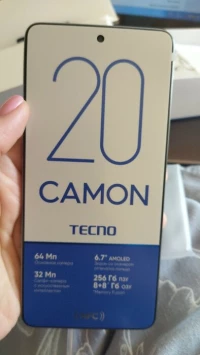 Camon 20 обладает стильным дизайном, который визуально привлекателен. Он оснащен экраном с яркими цветами и хорошим разрешением, обеспечивающим качественное отображение контента.
